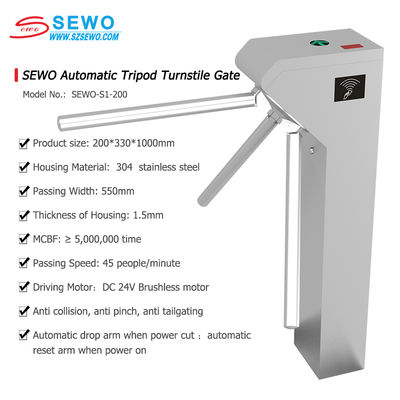SEWO fully automatic tripod turnstile is a high-tech access control management device that integrates machinery, electronics, microprocessor control, and various read/write technologies. It is designed for the automated management of pedestrian ingress and egress points. Its core features are: